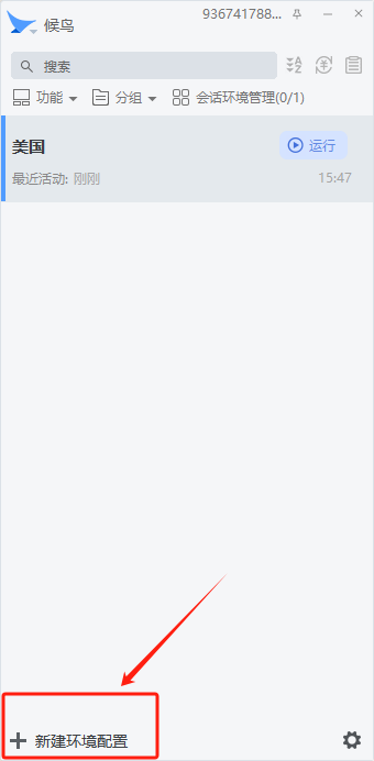 1. 同样需要登录候鸟指纹浏览器,然后点击【新建环境配置】,按需填写环境名称、浏览器参数等