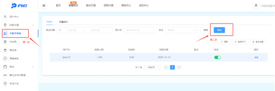 在左侧【子账号列表】部分,点击【添加】以创建新的子账号。